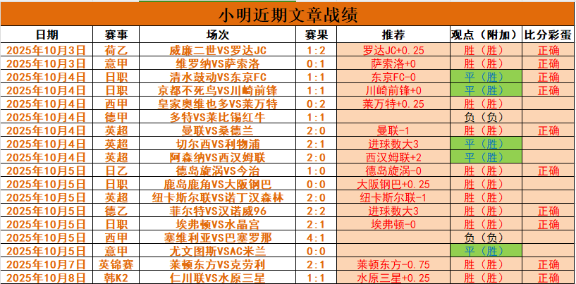 【上期回顾】状态超神,拿下全胜!昨英锦赛1场方向+比分成功打出,近17中15表现完美!昨比赛只打1场成功拿下,本来还有几场,求稳没发。今比赛不多,而且国际比赛日比较难猜,争取继续正向上分,加油!
