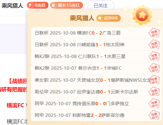 【战绩回顾】3场又是全胜,早场韩K2+日联杯广岛三箭+川崎前锋,豪取8连胜,今日比赛质量佳!乘胜追击,信心强烈,全力分析,只王牌精研有把握的比赛,继续拿下,加油冲全胜!欢迎长期关注猎人。