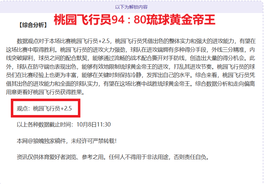 解锁内容包括:综合大数据分析+分解赛事走向+比赛建议+作者观点数据