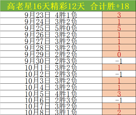 预选7胜5,预选赛保持清晰思维。昨继续胜利,连胜2天,16天胜13天,胜+16,胜利清晰地占据主流。