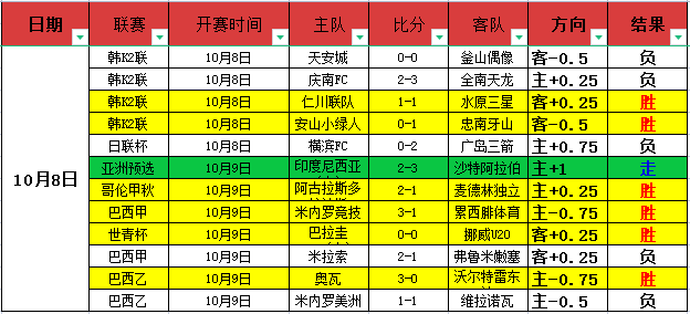 昨天表现不错!整体拿下12胜6走1净+1!昨天数据中,韩职的表现不错,整体表现稳定!亚预选的表现则是完美的打出,非常的给力!巴西甲和巴西乙则是一胜一负表现平稳!而世青杯的表现非常的出色,完美的打出,非常的精彩!
