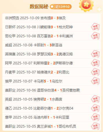 目前成绩十分稳定,近13胜10!祝大家生活如足球赛场般精彩,好运相伴,胜利连连!数据揭秘保持长胜心态,看到的朋友不要再犹豫了。