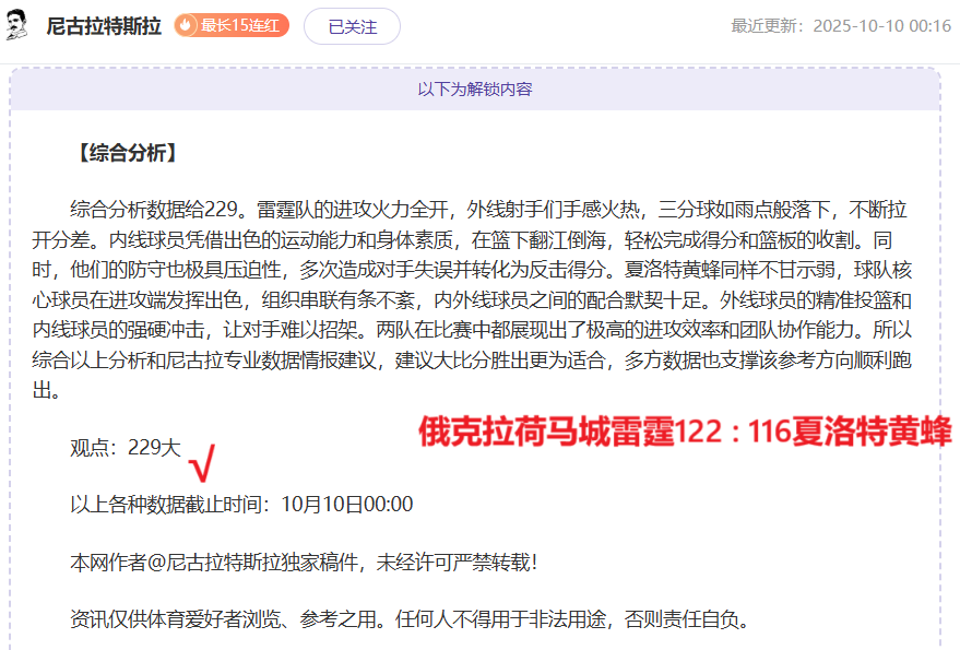 【成绩回顾】昨拿下3战胜,NBL(A)全胜,NBA也拿下二胜,今天情报数据再升级冲击连胜,尼古拉资深作者情报解读再有方法,信心强项情报解读连胜赛事再次出发,长期解读惊喜不断,此前作者创下4次双位数胜战绩,掌握着一手赛事资深情报,本期继续分享充满奇妙体育赛事,敬请大家持续关注!!