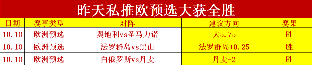 一、战绩回顾:昨天私推3场欧预选大获全胜,公推依然强势,6连胜、7连不败,另外包周场次近4胜3,昨天欧预选整体合计8场仅失3,表现不错。
