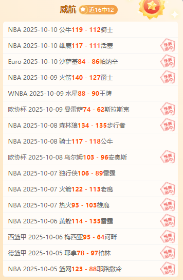 最近更新:2025-10-10 14:22 近16中12最长10连红