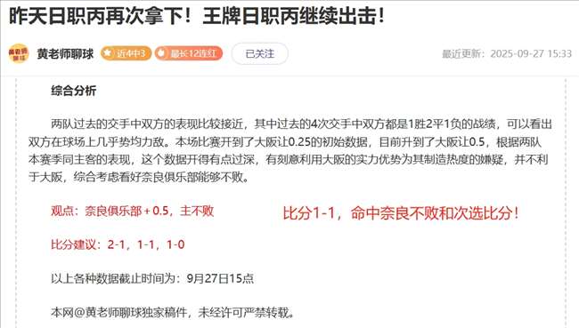 黄老师致力于研究各大赛事数据,拥有自己独创的数据模型,挑选的每场比赛都精心研究,我们以长线为主,长期效益非常不错,适合持续关注,保持一个好心态,我们一起共同进步!以下解锁内容包含:综合分析+观点方向+比分预测