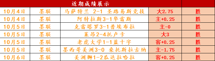最近更新:2025-10-10 15:41 墨西甲近6胜率83%近4中3