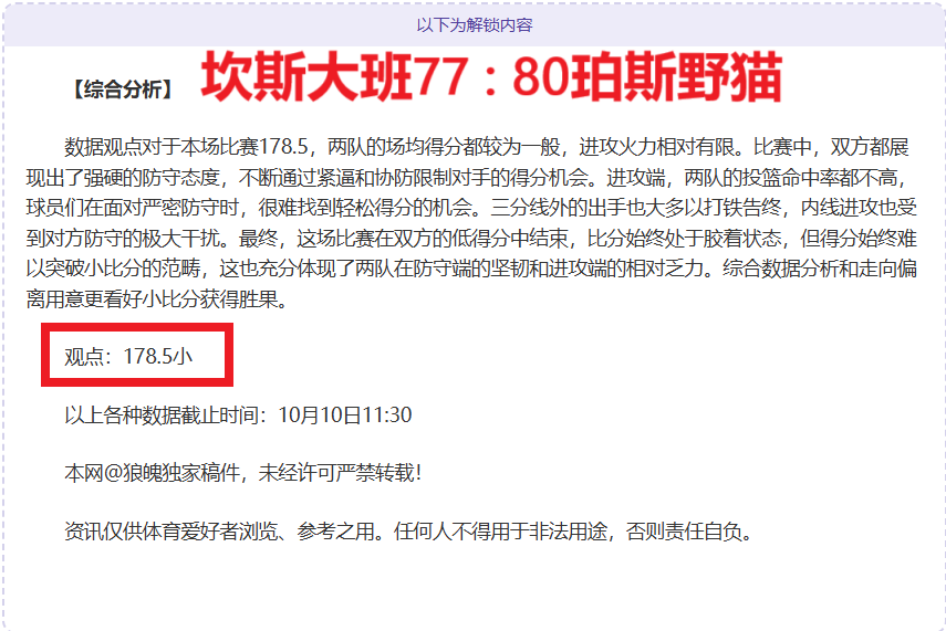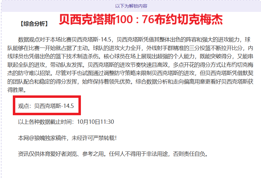 解锁内容包括:综合大数据分析+分解赛事走向+比赛建议+作者观点数据