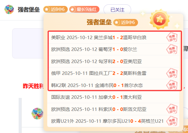 最近更新:2025-10-12 11:17 近5中4最长9连红
