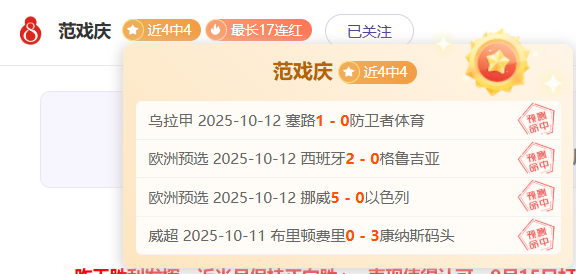 最近更新:2025-10-12 11:20 近4中4最长17连红