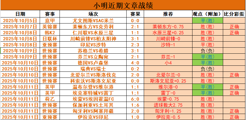 【上期回顾】拿下全胜,状态超神!昨豪取7中7,文章6中6,数据4胜2平,伊拉克、埃蒙、匈牙利、土耳其大全出,2场英甲打平,近17中15。彩蛋1场英甲打出。昨小明对自己表现非常满意,今继续加油,冲起来!