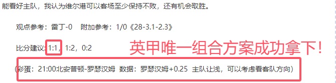 解锁内容:数据分析+比赛建议(观点+附加)+比分建议+附004组合方案