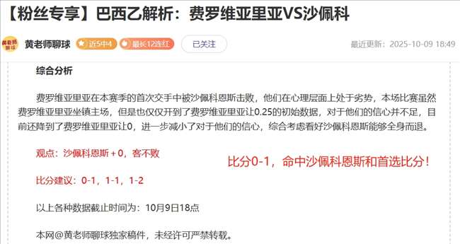 黄老师致力于研究各大赛事数据,拥有自己独创的数据模型,挑选的每场比赛都精心研究,我们以长线为主,长期效益非常不错,适合持续关注,保持一个好心态,我们一起共同进步!以下解锁内容包含:综合分析+观点方向+比分预测