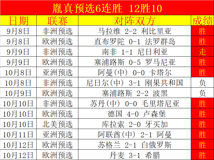 预选6连胜,近12胜10,预选赛事思维很清晰。昨天5胜4,连胜5天,取得胜+9辉煌,目前发挥得很好。