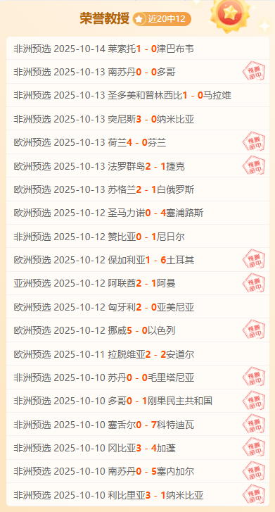 20胜12。最高打下14连胜的表现已见证实力。今天继续奉上强项赛事系列,各线赛事都能保证清晰的解读思路与靠谱的选择方向!截至昨天荣誉教授已经有4071场解读经验,今天继续精选5场,多元化的赛事系列,以更高连胜胜利率绩迎接5000场记录来临,关注荣誉教授,成为荣誉教授的好伙伴!