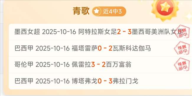 最近更新:2025-10-16 12:16 近4中3最长9连红