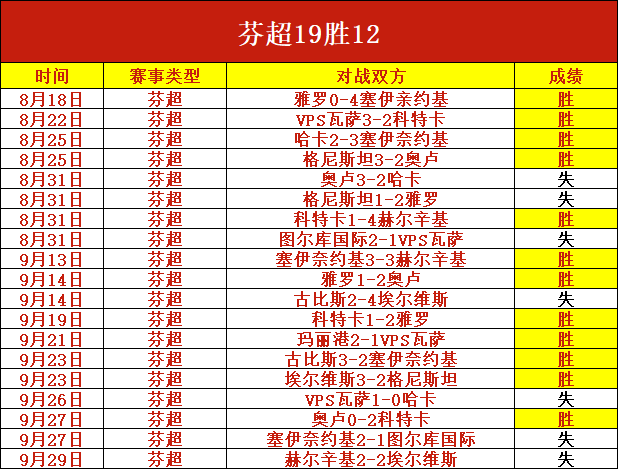 芬超19胜12,强项赛事稳的绝对有保证!今天赛事依旧选择强项系列,持续稳,别错过了!笔者近期前进脚步表现仍然优秀,本日赛程继续出击,争取在稳健的基础上进一步突破!