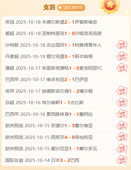 昨天的成绩很是很不错的,6场足球比赛3胜1平,其中吉达国民1-1利雅得青年成功命中比分,13中10!今天我会继续努力,做好每一场比赛的分析。