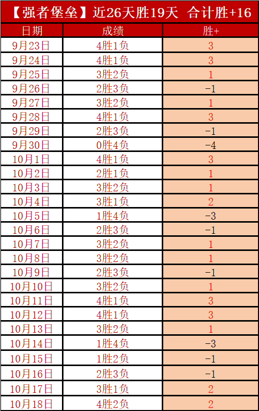昨6胜4,连胜2天,近26天胜17天,累计胜+16,整体发挥值得认可,显然胜利的绝对优势占据主导