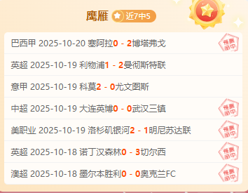 成绩回顾:昨日取得双胜,前近7胜5。本月最高打出12连胜。感谢一直以来的支持与陪伴,今天看好不错的赛事,强项赛事很有信心,鹰雁也曾创下19连胜的超高记录。愿大家在观赛的同时,也能收获满满的喜悦与惊喜,觉得还行的不妨继续关注,一起开启精彩的足球之旅。