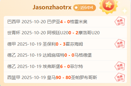 【战绩回顾】命中德甲比分弗莱堡2-2法兰克福,海登海姆2-2云达不来梅,拜仁2-1多特蒙德,命中德乙比分纽伦堡1-1荷印尔斯泰因,命中足球方向近4胜3,命中篮球方向近5胜4!