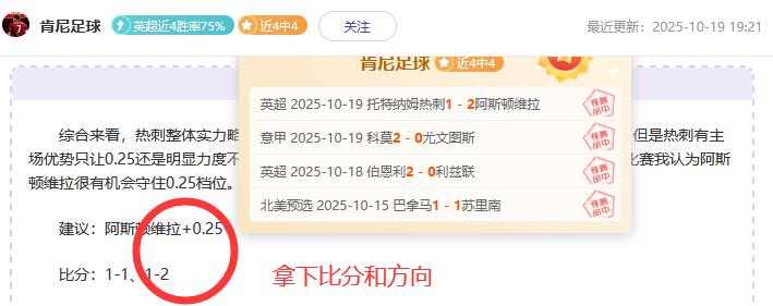 昨晚两场全部拿下,其中英超还命中比分,四连鸿状态状态十分出色!