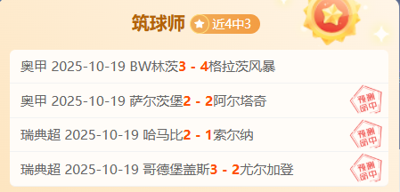 成绩回顾:近4中3,今天笔者继续秉承宁缺毋滥的精神,只推有质量有信心的比赛而不是数量搭够,确保每一场比赛都有命中率的;今天笔者同样挑选出信心场次,望大伙们可以一起与筑球师研究胜利的观点。