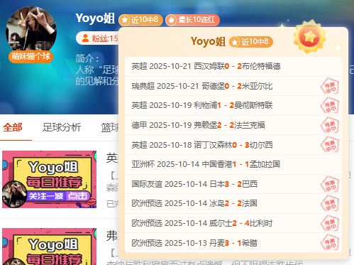 【上期回顾】:昨天公推瑞典超米亚尔比提前夺冠创奇迹,豪取三连胜!可惜超级重点英超方案铁锤帮遗憾失利,但近况表现依然稳健!——今天核心赛事已确认,信心依旧,各位可点击一下【赞赏】按钮给予鼓励,轻松在“站内信”获取当天新鲜信心专场哦!多一份参考离喜悦再近一步,Yoyo将继续率粉粉们继续前行~