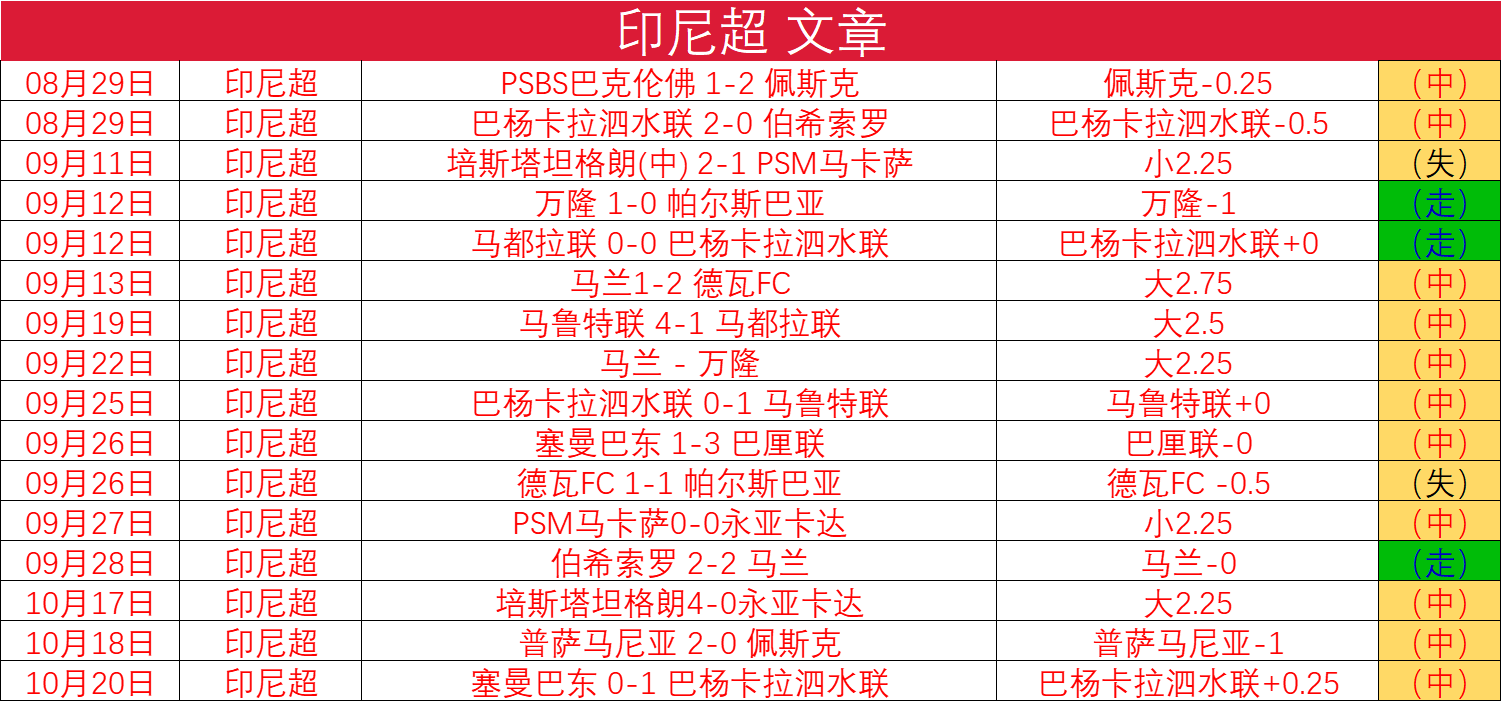 最近更新:2025-10-22 11:08 印尼超近9胜率89%近11中7