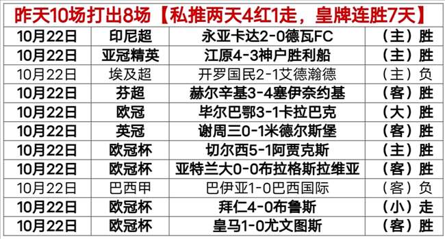 【战绩回顾】昨天文章+私推10胜8炸裂红;其中私推1红1走,近两天私推4红1走不败!皇牌场次(3:1)继续过关;皇牌连胜7天,连胜7天!——今天乘胜追击。