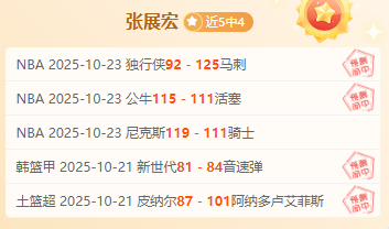 昨日取得两场NBA胜利,近5胜4。目前连续两天单挑取胜。张展宏继续深挖数据,不吹不擂真实成绩有目共睹。继续为大家送上高质量和专业的赛事理解,敬请大家关注!