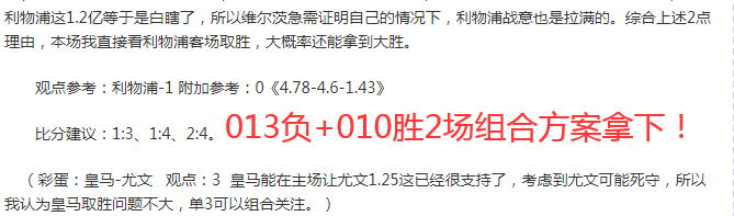 【上期回顾】收!收!收!整体6中5,马赛大、毕巴大、利物浦全出,拜仁大平。近12中11。赞赏1胜1,加拉塔打出,赞赏2连胜。昨再度大丰收,尤其拿下皇马+利物浦组合。2天赞赏+文章10场欧冠全对,状态好到极致!今继续加油。