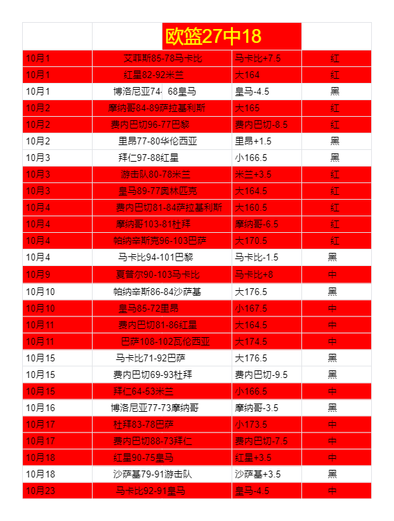 欧篮稳定近27中18,今天有信心拿下,做好赛前分析走的是长期稳定路线 才是最牛的.