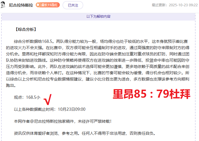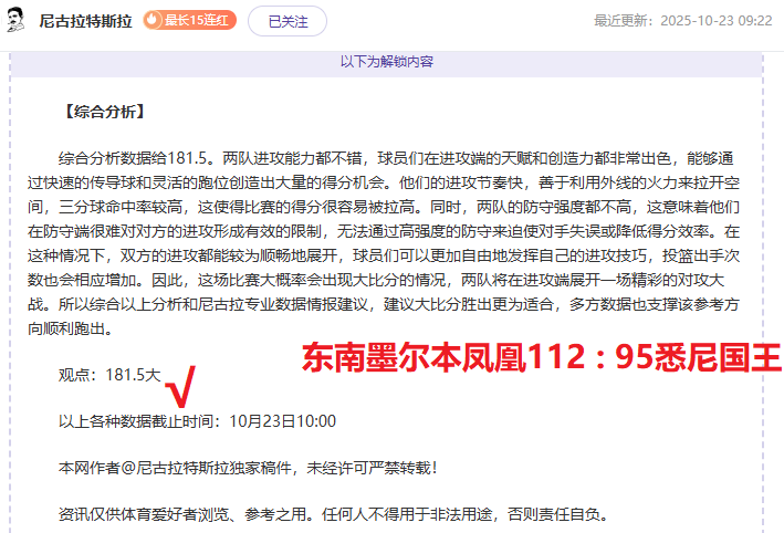 解锁内容包括:综合分析+比赛建议(数据观点+附加观点)