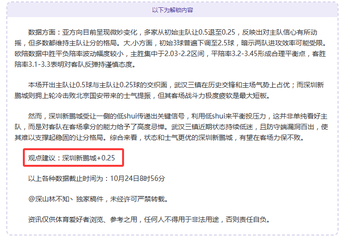 不知近期的状态还是很稳定的,昨日中超2中1,澳超公推拿下,目前整体15中13+中超5中4胜利率80%,不中的那一场中超虽然方向不中,但是大.小中了