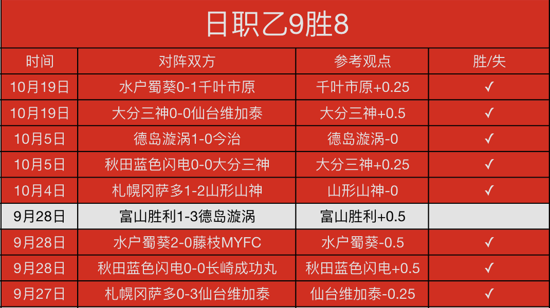 王牌赛事!日职乙近9胜8