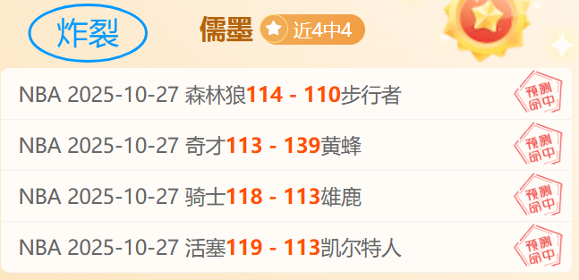 NBA豪华4连胜,炸裂,精选有信心的场次