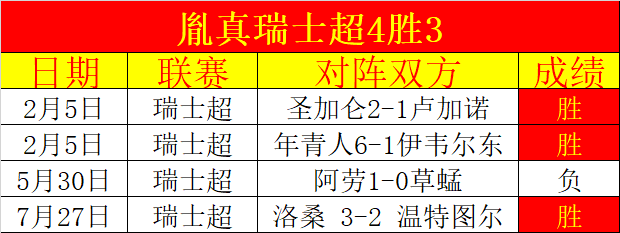 瑞士超4胜3,今天的瑞士超具备很高期待值。20天胜11天胜+12,胜+增长速度很精彩!