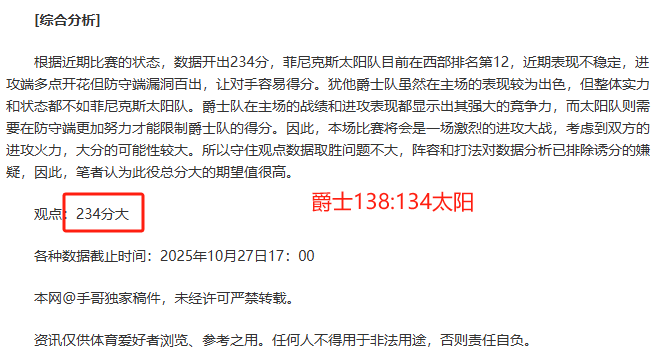 赛事回顾:现时取得13胜8的成绩,作者潜心专研各大联赛的动态,本场作者演算优越概率再分析精彩赛事!运用大量篮球知识演算赛事分享给大家,专业的赛事分析有目共睹!深度调整过后将奉上精彩的赛事情报!紧随作者的步伐,收获胜利并非难事!