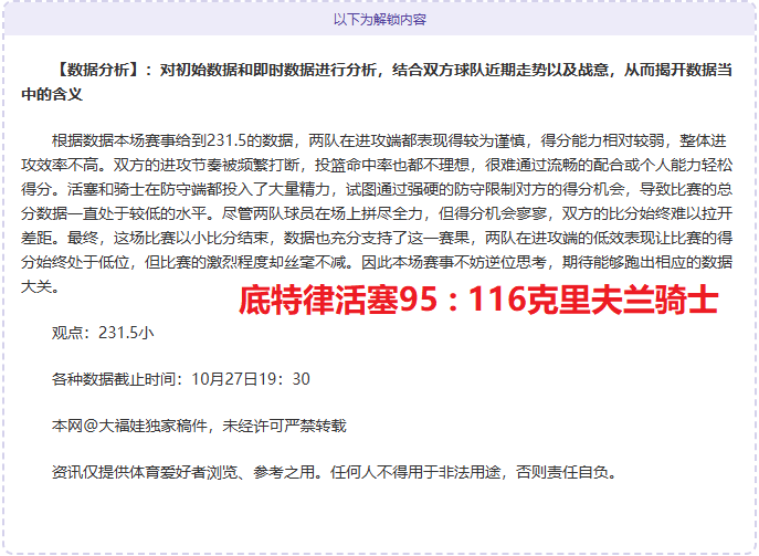 【基本面分析】:包括双方球队状态、阵中情况的多项数据分析