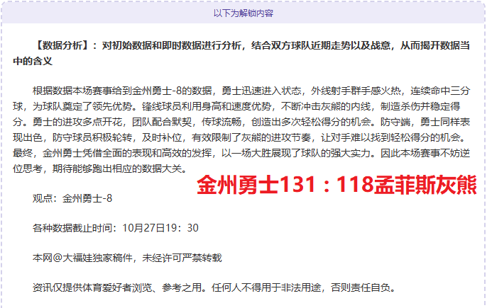 【基本面分析】:包括双方球队状态、阵中情况的多项数据分析
