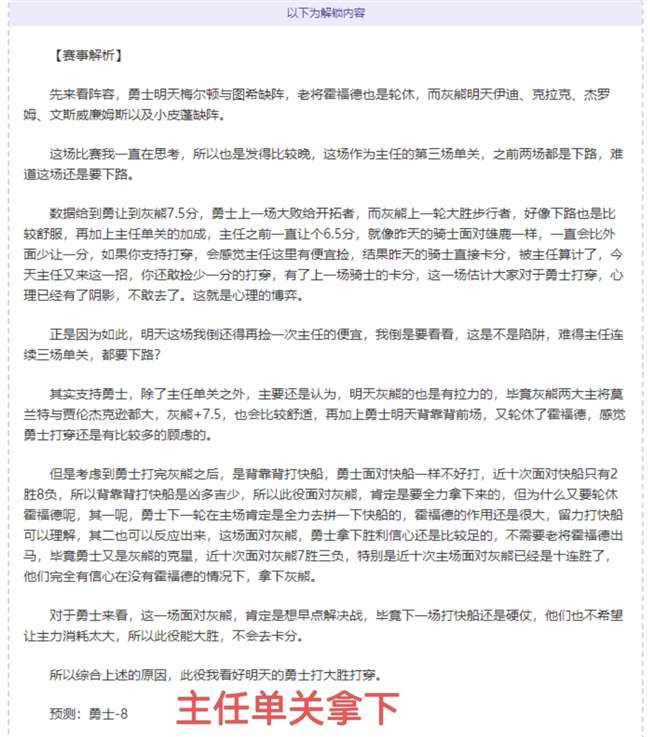 以下为解锁内容:含赛事解析+数据分析+观点参考