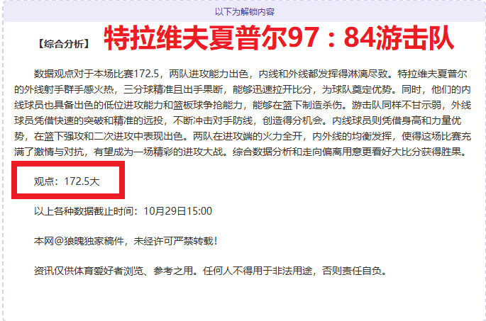 解锁内容包括:综合大数据分析+分解赛事走向+比赛建议+作者观点数据