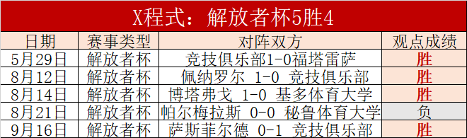 解放者杯5胜4,美洲赛事出奇精彩。昨胜利发挥,近16天胜12天+11,当前状态非常好!