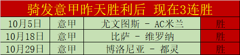 意甲昨天继续胜利,10月保持着全胜状态。13天胜9天合计胜+9,现在处于狂飙胜+时候!