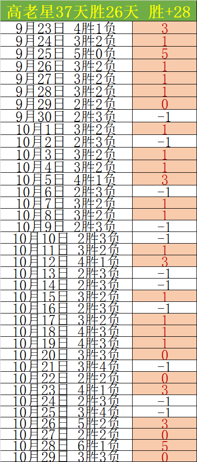 连续4天精彩胜+8,37天胜26天,合计胜+28,令人惊叹的胜+值得骄傲,胜利清晰地占据主流!