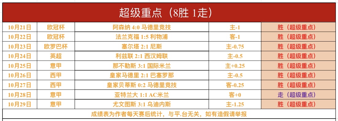 战绩回顾:【超级重点】昨日意甲尤文图斯方向完美全胜,强势8连胜!昨日总进球数1场,苏超马瑟韦尔没有打出!解锁文章4战拿到2胜2负,状态还行!赞赏数据昨晚没有发送!鸡锅不追求场次多,追求少而精准,绝不滥竽充数,必须把老铁们的每一份信任都转化为胜利!
