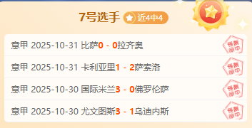 昨日2场意甲稳稳全胜!近两天4场赛事信心+附赠7个玩法无一失手,大获全胜,状态可谓如日中天!周五来关注德甲赛场,乘胜追击!