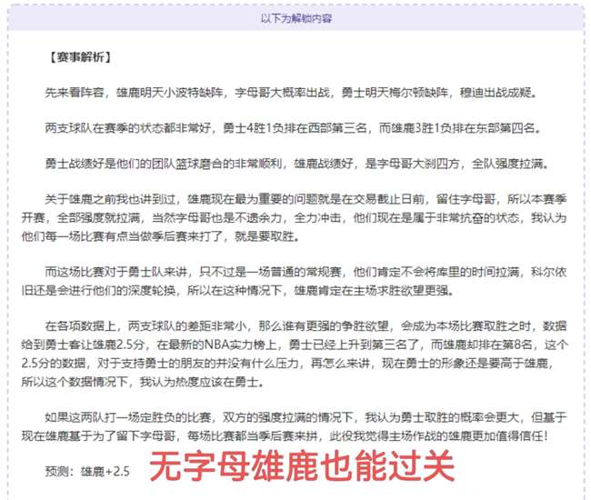 以下为解锁内容:含赛事解析+数据分析+观点参考
