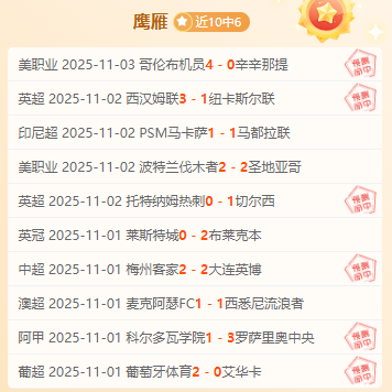 成绩回顾:昨日4场比赛仅仅失误一场。感谢一直以来的支持与陪伴,今天看好不错的赛事,强项赛事很有信心,鹰雁也曾创下19连胜的超高记录。愿大家在观赛的同时,也能收获满满的喜悦与惊喜,觉得还行的不妨继续关注,一起开启精彩的足球之旅。